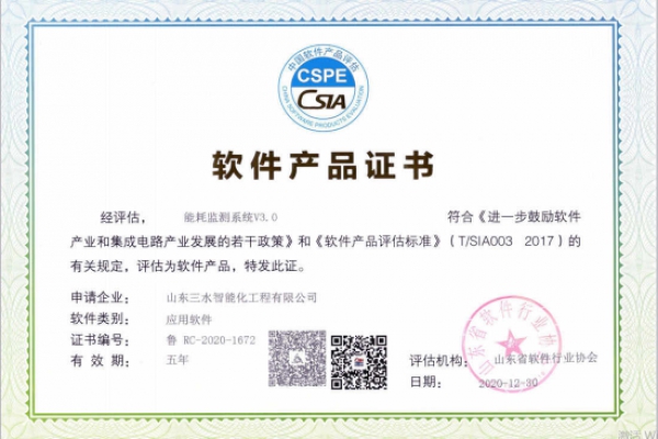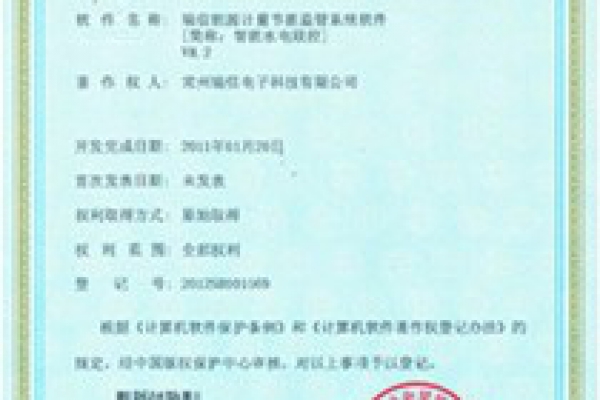 智能水電聯(lián)控系統(tǒng)軟件證書